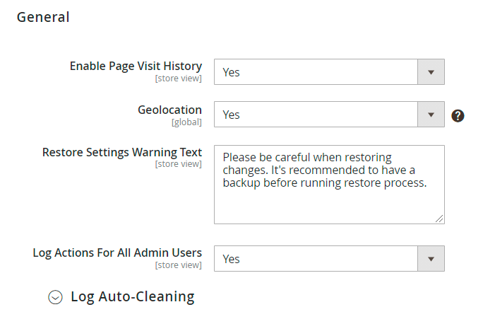 Return to the Admin Actions Log → General tab and expand the Log Auto-Cleaning. Here you can configure automatic log cleaning to avoid database overload.