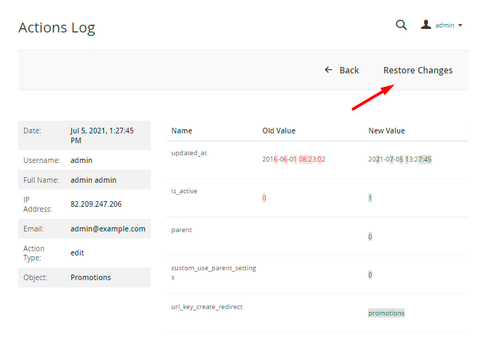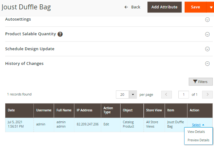 With the Admin Actions Log extension, you have the possibility to track all backend actions performed by store administrators.