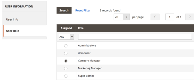 Edit any existing role by clicking it or create a new one using Add New User button.