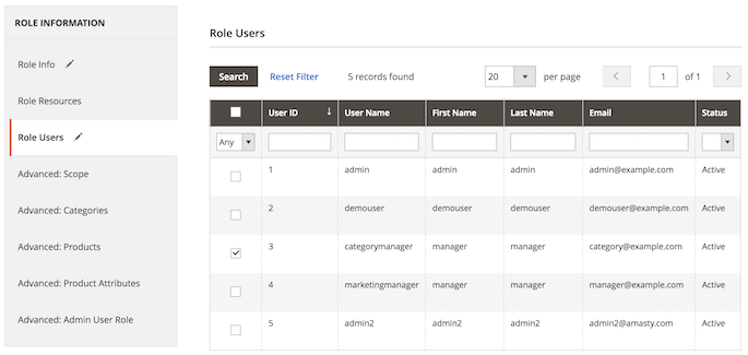 Then, you can assign this role to certain users. Click the Role Users tab and flag the required users.