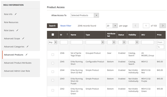 Next, the Products tab enables you to provide access to all, only selected, or own created products. In second case you will need to flag the required product. In third, you can make products accessible only for their owners that is convenient for the multi-vendor stores.