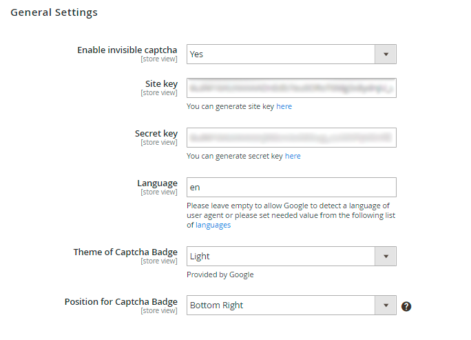 Next, you can specify the Language of the Google Invisible reCaptcha that will be used for all users instead of their browsers' preferences. You can see the list of the available languages here.