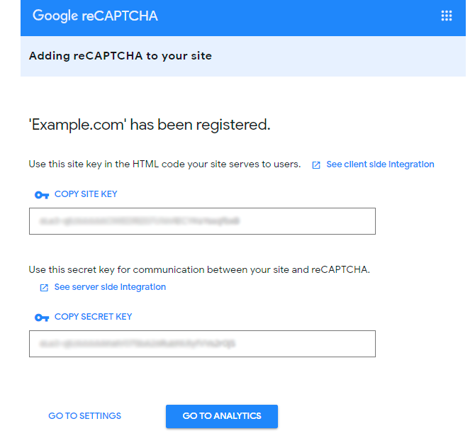 To get the Site key and Secret key click the link.