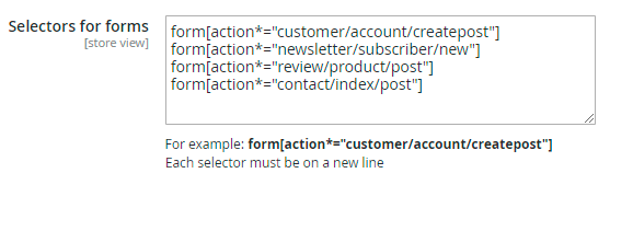 3. In our case the selector is .customer-account-create .account-create form and we add it to the Selector for forms field.