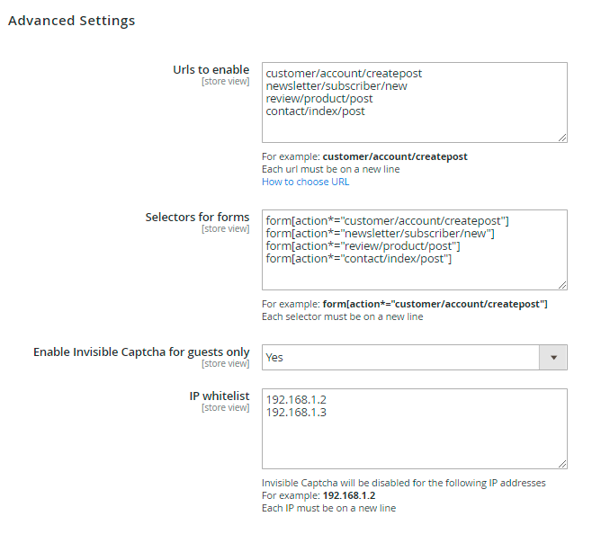 IP whitelist - specify certain IP addresses for which you want to disable Invisible Captcha. Place put each IP address on a new line.