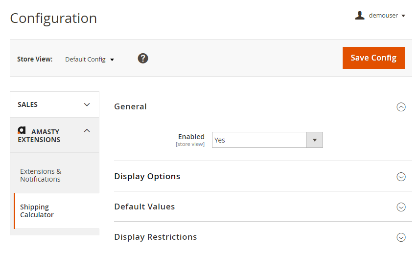 To configure the Shipping Calculator extension, go to Stores → Configuration → Amasty Extensions → Shipping Calculator.