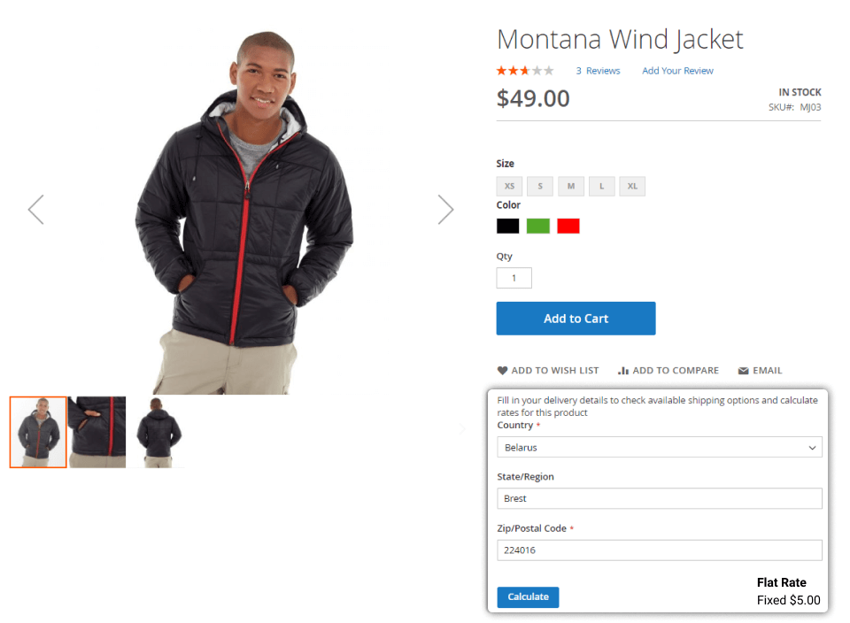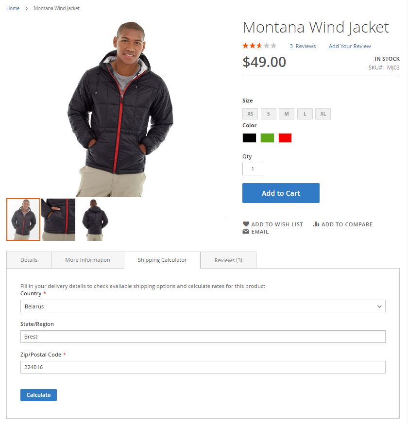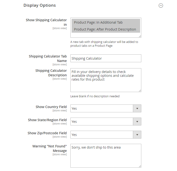 Show Shipping Calculator in - choose where to place the calculator on a product page: In Additional Tab or After Product Description. In case In Additional Tab is selected, a new tab with shipping calculator will be added to product tabs.