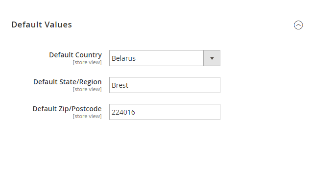 In this tab you can set default values for Country, State/Region and Zip/Postcode fields.