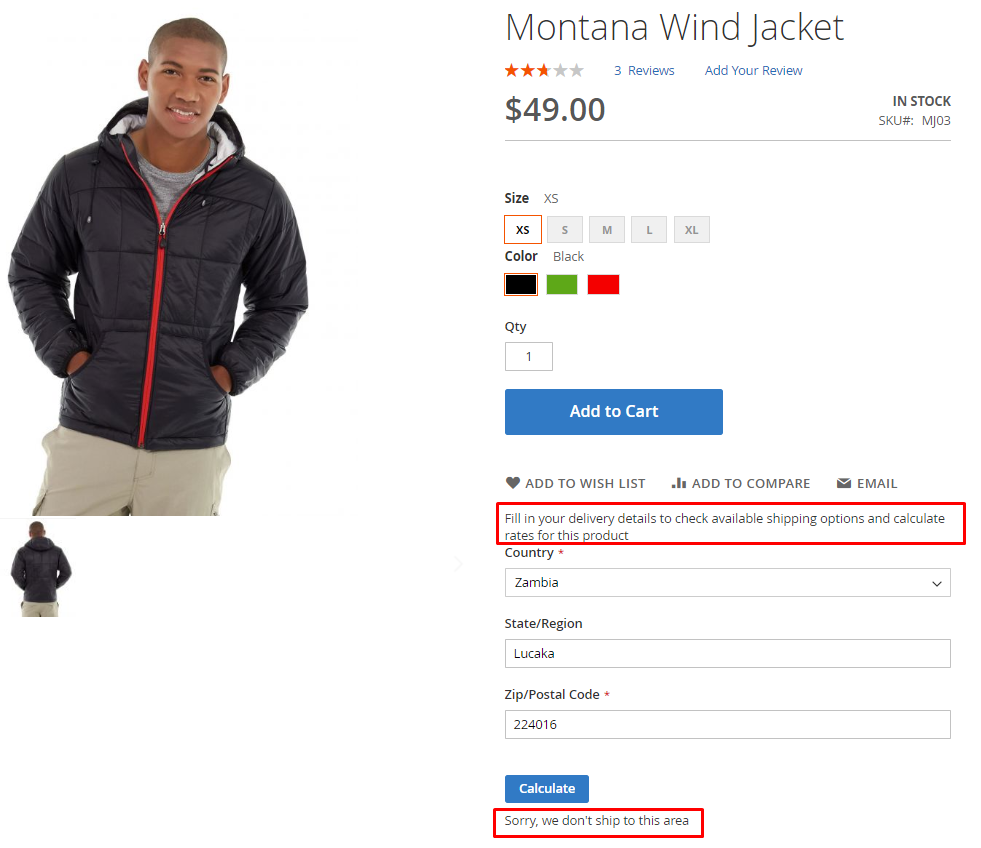 Display a shipping calculator description and notify your customers in case you don’t ship to the particular area.