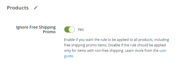 Ignore Free Shipping Promo - set to Yes, if you want the rule to be applied to all products, including free shipping promo items; set to No, if the rule should be applied only for items with non-free shipping.