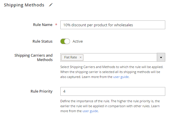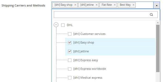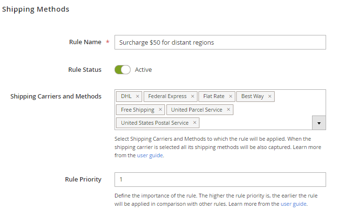 Shipping Carriers and Methods - choose shipping carriers to which the rule should be applied and determine the list of available shipping methods.