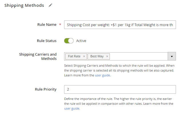 Rule Name - specify the name of the shipping rule, which will be used in the admin area. Rule Name is also displayed on the grid.