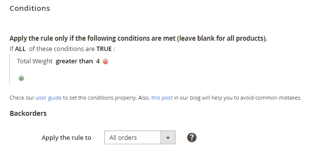 One of the most common reasons, that shipping rules either don’t work properly or don’t work at all, is incorrectly set conditions.