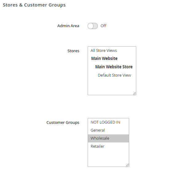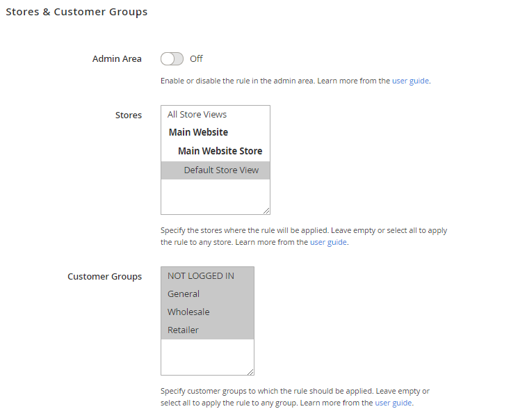 Use this tab to limit certain customer’s facilities and to disable or allow shipping with coupon.
