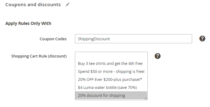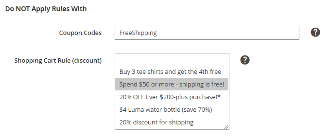 Shopping Cart Rule (discount) - works the same as the setting above, but uses the list of coupons in the selected rules instead of a single coupon.