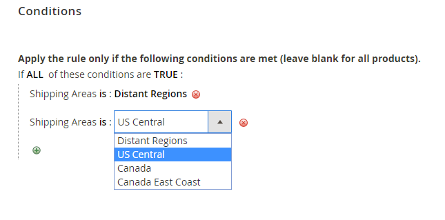 Shipping Area Name - specify the title of the area. It will be displayed on the grid and in the rules conditions.