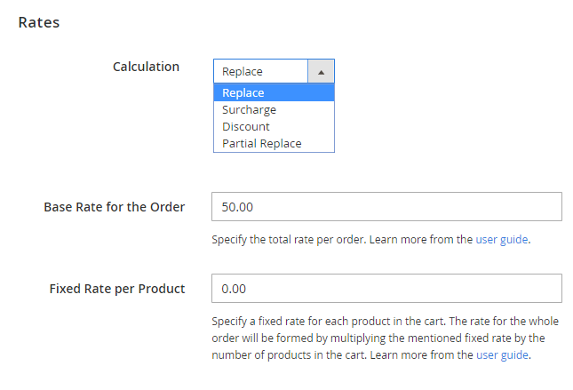 Fixed Rate per Product - specify a fixed rate for each product in the cart. The rate for the whole order will be formed by multiplying the mentioned fixed rate by the number of products in the cart.