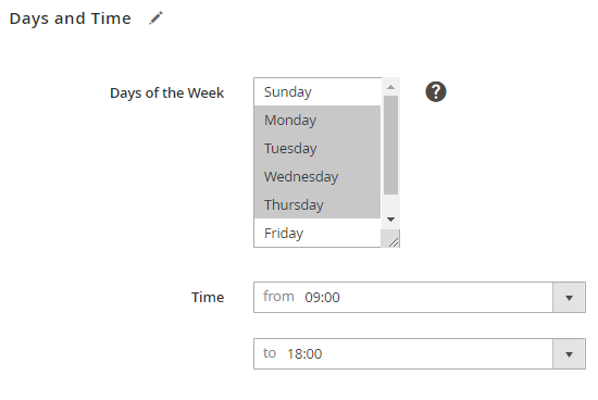 Expand this tab to choose particular days of the week and time for the rule to be applied.