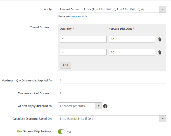 Skip Items with Special Price - Specify whether to apply or not the discount to the products with special price.