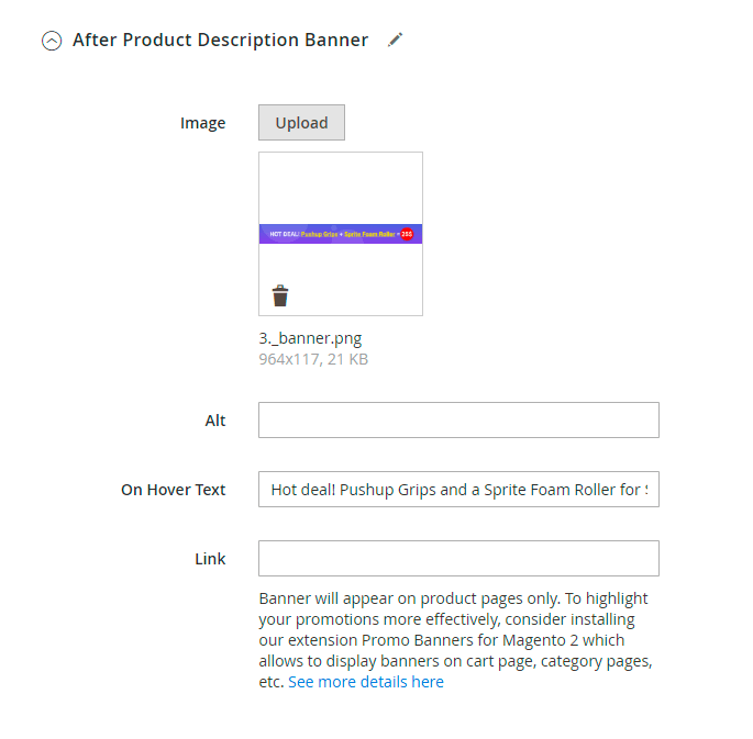 2) After Product description Banner - the banner will appear on product pages, after the products description.