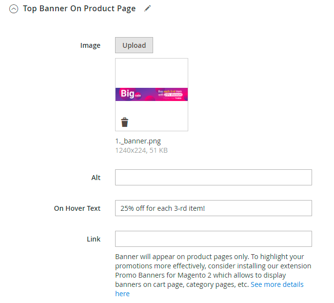 1) Top Banner On Product Page - the banner will appear on top of product pages.