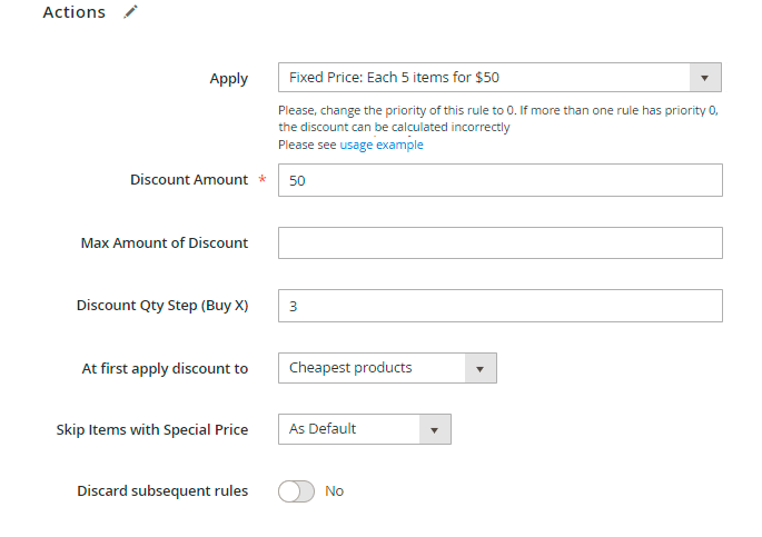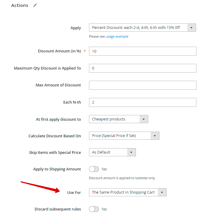 Discard subsequent rules - enable this option to stop other rules with lower priorities if this rule is applied. We don't need this for our promotions, so we set to 'No'.