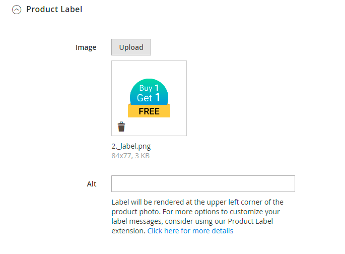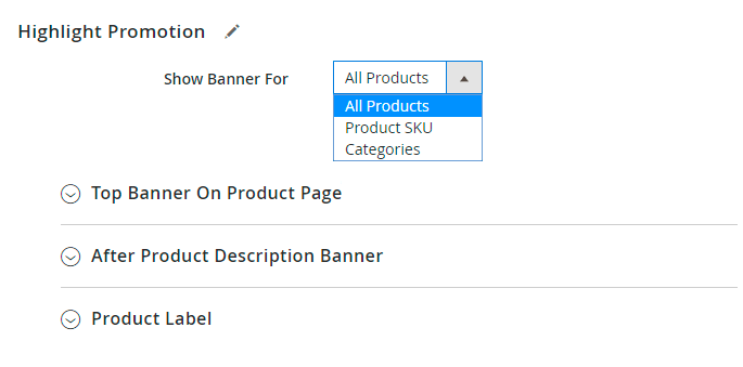 At first, specify for which products the banners/labels should be shown. You can choose to display them for all products, for particular product categories or only for special products.