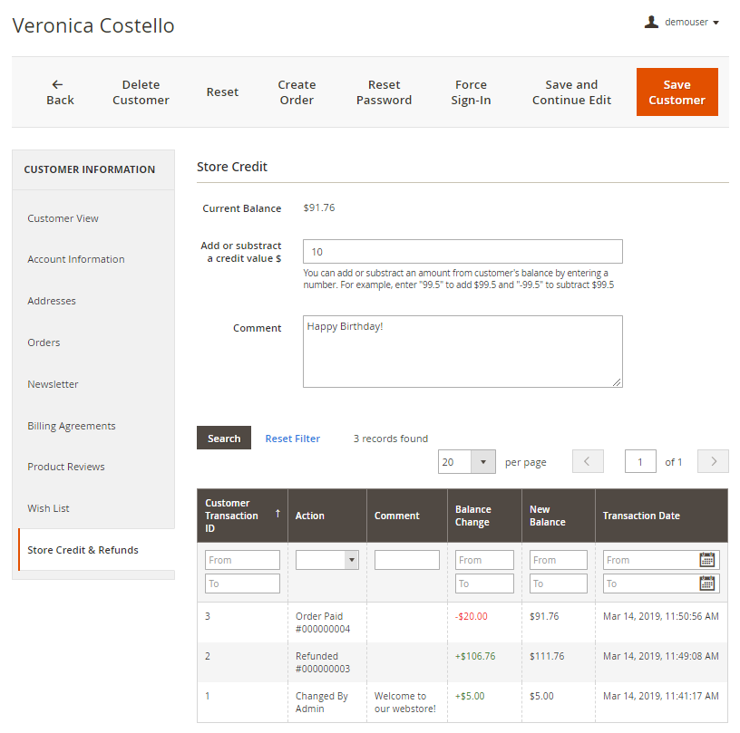 Comment - give your customers some reasons for adding or subtracting store credit balance.