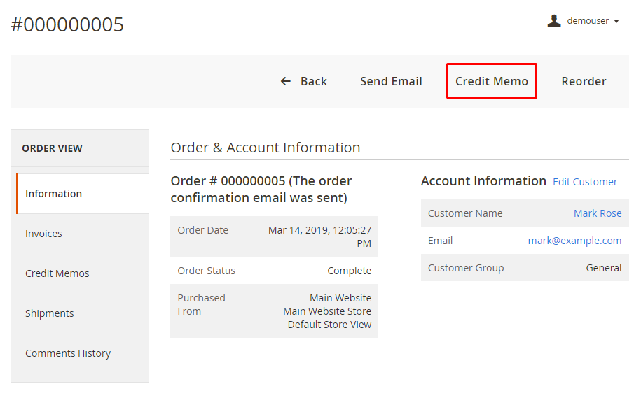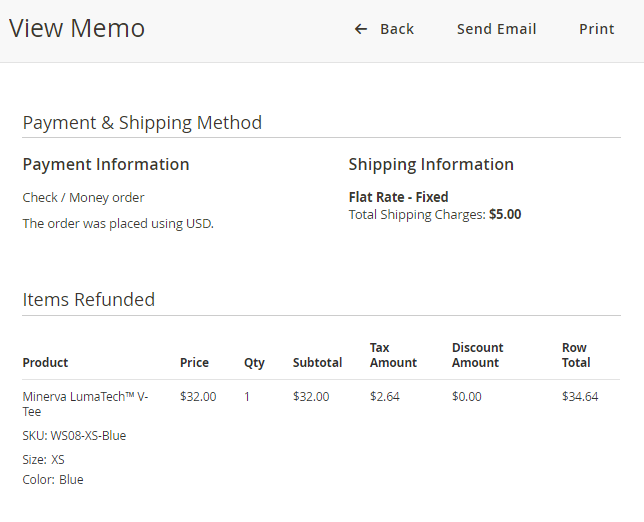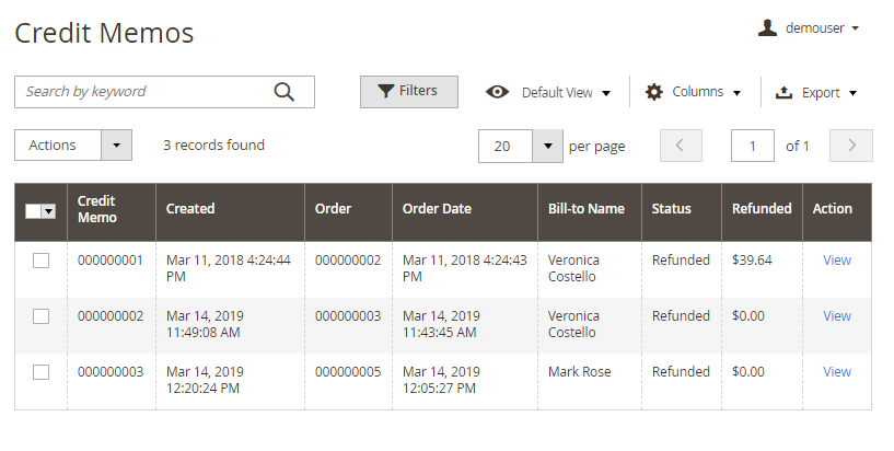 To view all credit memos on a separate grid, please go to Sales → Credit Memos.