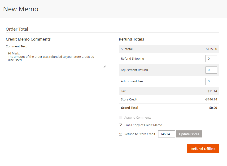To refund the order offline, tick Refind to Store Credit option. You can cover refund requests with store credit either full or partially.