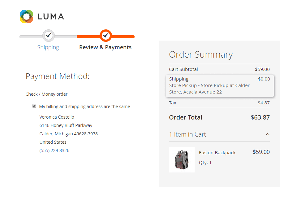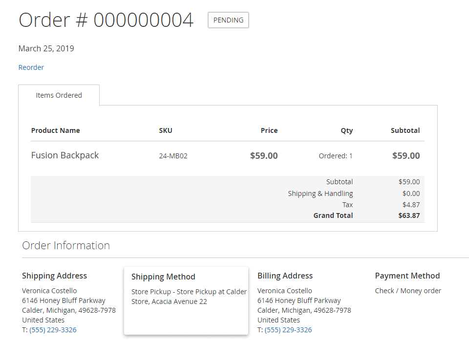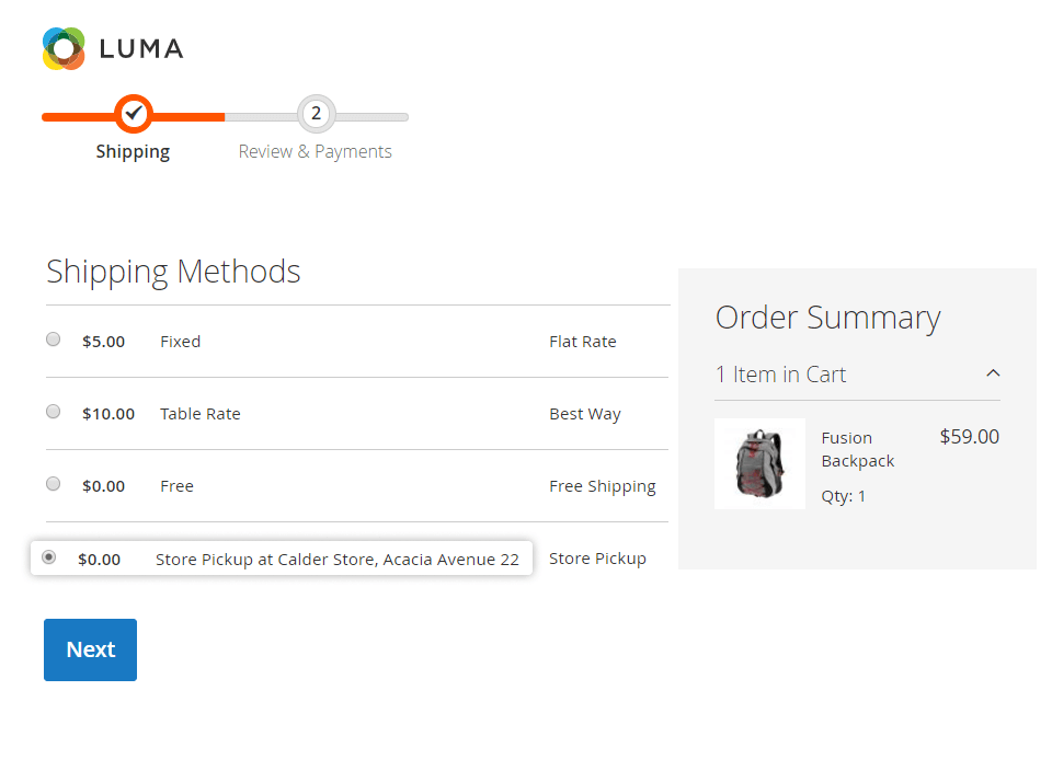 Give your customers the opportunity to pick up their orders from a suitable store. Boost sales by providing customers with a comfortable shipping method. Improve customer loyalty by allowing them to save time and money for shipping. Display a brief order summary on a customer’s account Regulate store pickup method availability for particular stores and customer groups Notify customers about store pickup details