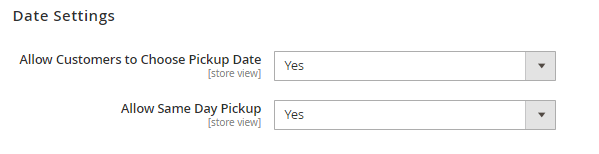 Allow Customers to Choose Pickup Date - Set Yes to allow customers to choose the date to pick up their orders.