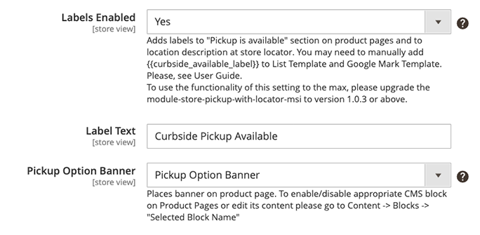 Labels Enabled - set to Yes to enable Pickup Option label on the frontend.