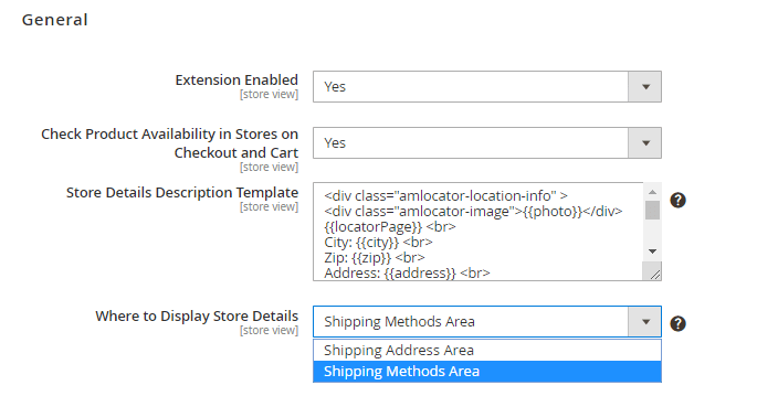Where to Display Store Details - this feature allows users to choose where to display store details on the storefront - now you can choose between the ‘Shipping Address area’ and ‘Shipping Methods area’ options.