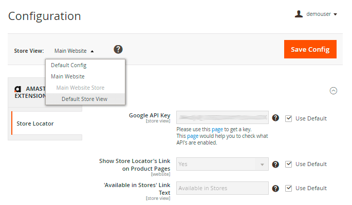 To configure the extension, go to Stores → Configuration → Amasty Extensions → Store Pickup with Locator.