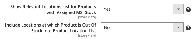 Show Relevant Locations List for Products with Assigned MSI Stock - Set to Yes to display a list of locations for products with assigned MSI Stock. This way, on a product page you can display a list of locations where the selected product and/or its certain configuration is available. Moreover, the mod will also display the qty of the chosen product option in each location.