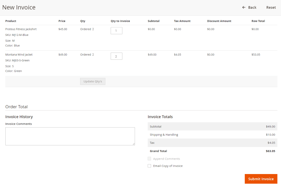 Submit the invoice by pressing Submit Invoice button at the bottom of the page.