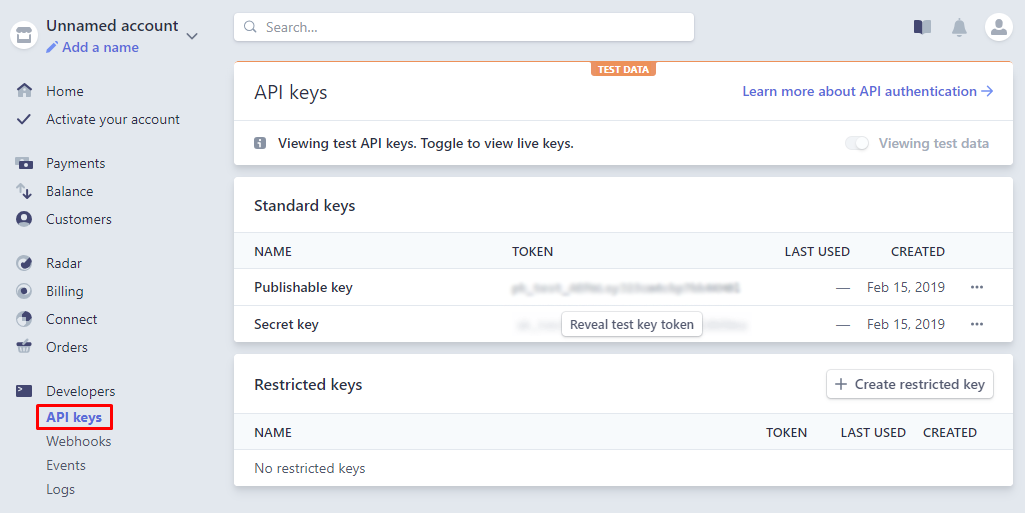 To get a Publishable Key and a Secret Key, please go to your Stripe account and sign in.