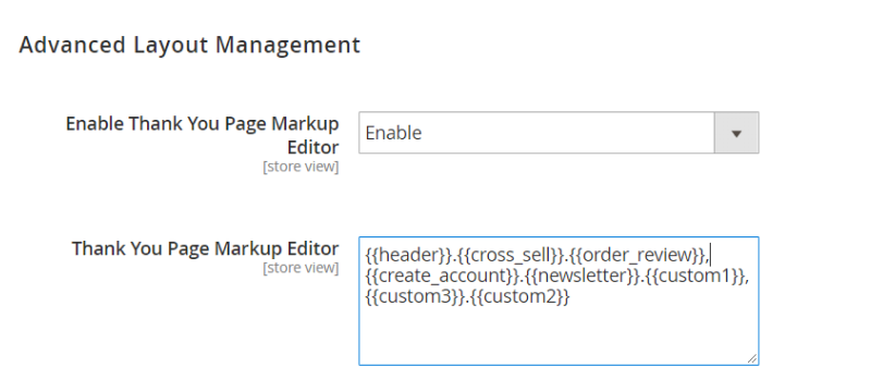 Advanced Layout Management enables positioning your Thank You page blocks not only in a single column but in various ways using markup language and text editor.