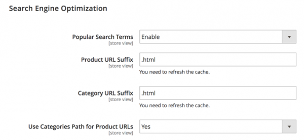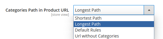Categories Path in Product URL — The option allows you to define the preferred length of product URLs.