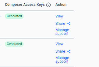 There is also a Manage Support button that opens the Support tab for managing support subscriptions.