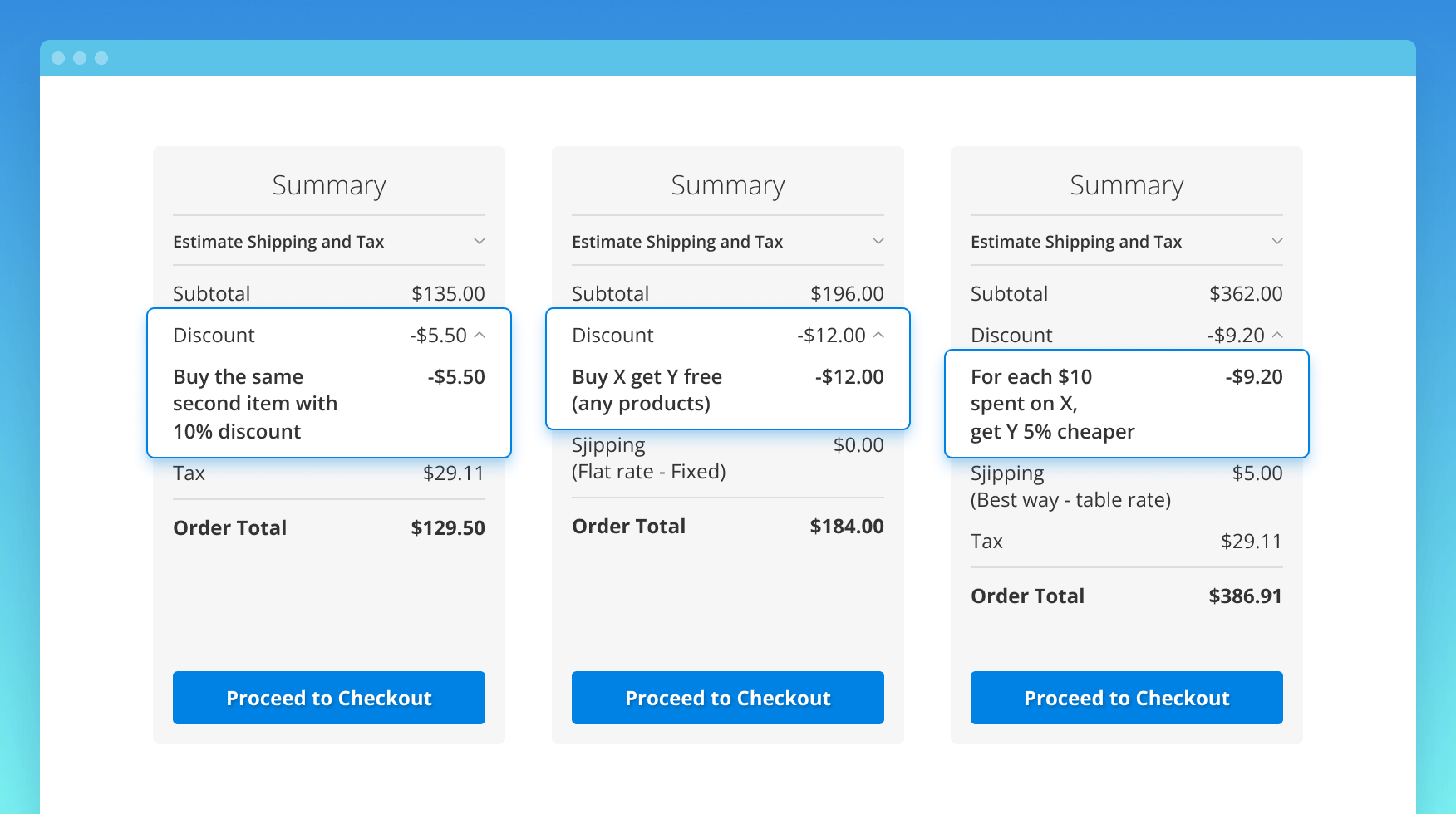 Limit discounts in case the Magento promotion rules from several sources apply to the same item. This way, you don't need to check each and every possible discount source for overlaps and don't spend excessive amounts of money on ineffective special offers. The new algorithm compares the original price after Cart Price Rule discount with the original price after non-Cart Price Rule discount. Then, it chooses the value you need, including the "get special price in Magento 2," depending on Magento 2 discount module configuration.